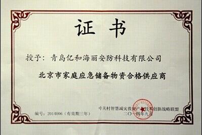 经评选,亿和海丽研发生产的“安心”牌家庭应急包完全符合家庭应急物资储备产品标准并被评为“北京市家庭应急储备供应商”。这标志着亿和海丽“走进百姓、做大市场”为下一步的应急产品推广迈出了重要一步。