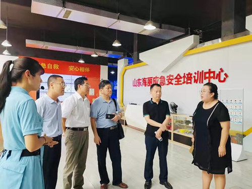 8月26号,济南市应急局党组成员、副局长刘慕平、济南市应急局政策法规处负责人夏信强、青岛市应急局领导一行莅临海丽雅集团参观考察,青岛海丽应急安全培训中心总经理郑文娇全程陪同参观产品展厅和应急安全体验培训中心。