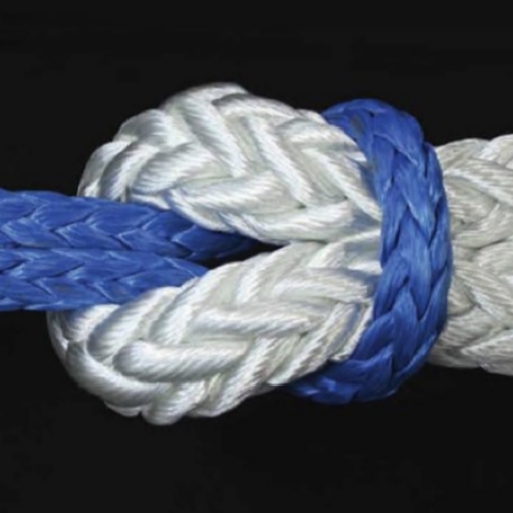 眼对眼拼接这种化纤绳的连接方式需要将两个扣眼拼接在一起,形成永久性连接。如果要对绳缆进行更换,则需要重新将扣眼进行连接。这种连接方式在绳缆尺寸近似时强度效率最高,并且这种连接方式比双合结强度损失小。